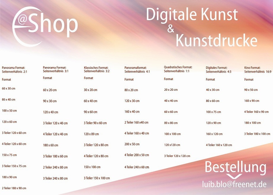 Bestellung und Preisabfrage via E-Mail oder Telefon, mit Format- und Werks - Nummer u. Name - Angabe. In ca. 5 bis 10 Tagen ist das Bild bei Ihnen. Druck: Digital, auf Leinwand - Keilrahmen. Sonderwünsche bitte bei der Preisabfrage hinzufügen.